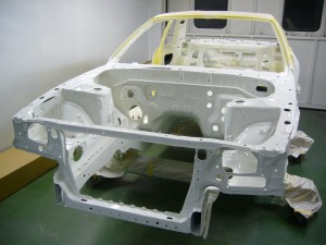 ちなみにインプレッサ(GC8)です。塗装前、塗装後ですが、気分良く真っ白になっています。