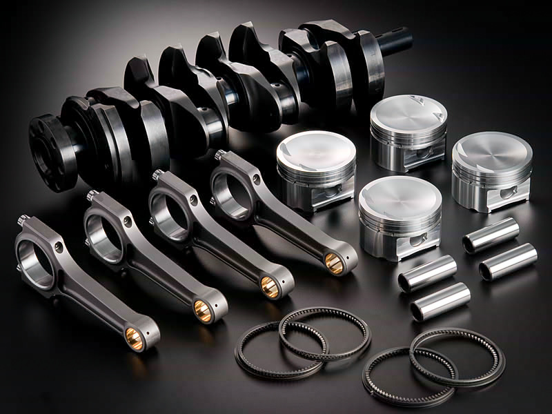 鍛造ピストンCシリーズx4、ピストンピンx4、スナップリングx8、ピストンリングセットx4、I断面コンロッドx4、コンロッドメタルx4、ビレットクランクシャフトx1
